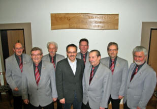 60-jährige Vereinstreue als aktiver Sänger Ernst Rehmer; für 40 Jahre aktives Singen Dietrich Meißner, Dieter Schwarz und Heinz Ruch