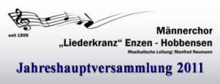 Bei der diesjährigen Jahreshauptversammlung des Männerchores „Liederkranz“ ENZEN-HOBBENSEN wurde im Rahmen von Jahresberichten nochmals Rückblick auf das erfolgreiche Sängerjahr 2010 gehalten. Der Vorstands-/Pressesprecher, Manfred Gröne, begrüßte die Anwesenden der Versammlung, sowie den
