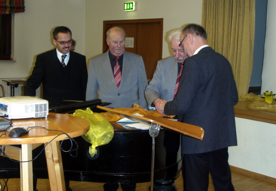 Schöttelndreier überreicht Präsente an (v.l.) Chorleiter Manfred