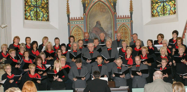 Von Dietlind Beinßen Wendig und ausdrucksvoll beschworen die Letelner zu Beginn des zweistündigen kurzweiligen Darbietungsreigens den Frieden dieser Welt, zelebrierten innig „Hebe Deine Augen auf“ sowie Mozarts nuancenreiches „Aveverum“ und forderten eindringlich: „Schau auf die Welt“. Händels „Halleluja“ erfuhr zudem eine prononcierte Wiedergabe. Unter vom Klavier her kommenden Anweisungen Neumanns zeigte anschließend die ebenfalls gesanglich in sich stimmige Herrencrew ihr Talent. Mit langem Atem brachte sie „Lobet ihr Völker“ nahe, nachdem das zart offerierte „Morgenrot“ vorangegangen war. Freude bereiteten darüber hinaus farbenreich ausgekostete Stücke wie das von Tenor Martin Rehmer ansprechend unterstützte „My lord, what a morning“. Auch das eingestreute „Pie Jesu“ konnte sich klanggestalterisch ebenso hören lassen wie die vom Bass Kurt Brakhage bereicherte rhythmisch frische Melodie des „Swing low“. Für interessante Beiträge sorgten die Teams alternierend ein zweites Mal. Zuerst wussten die Letelner mit „Das ist Dein Tag“, einer Udo-Jürgens-Komposition zu punkten, danach mit dem Abba-Hit „Thank you for the music“ und dem flotten russischen Lied „Zigeuner, spiel´ uns auf“. Sicher und einsatzfreudig wünschte Neumanns Herrenriege „Sonnenschein auf allen Wegen“, verlieh dem Lied „Die Rose“ Innigkeit und machte erfolgreich beim „König der Löwen“ halt. Locker-flockig schickte die Gemeinschaft „Rock my soul“ hinterher, dem sich das von allen Beteiligten inbrünstig vorgetragene „Reicht euch die Hand“ und ausdauernder Beifall anschlossen. Gerne folgten die Besucher zum Finale der Aufforderung, bei „Kein schöner Land“ mitzumischen. Die wärmenden Melodien hatten Petrus allerdings nicht erreicht, denn draußen regierte Maikühle. |