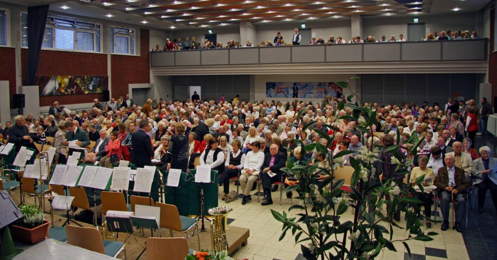 rappelvolle Aula des Ratsgymnasiums hat die gastgebenden