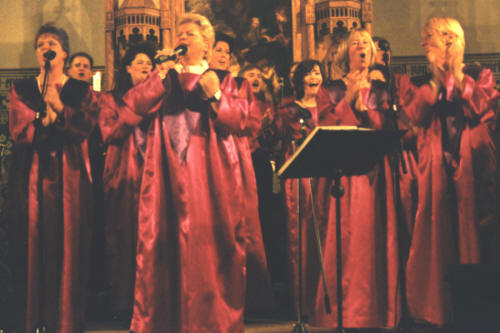 von einer fünfköpfigen Band. Bei „Amen“ und „We shall overcome“, den gemeinsamen Abschlussklängen beider Chöre, hielt das Publikum nichts mehr auf den Plätzen. Ein nicht nur symbolisches Händereichen zwischen Chören und Zuhörern beendete das Konzert. web