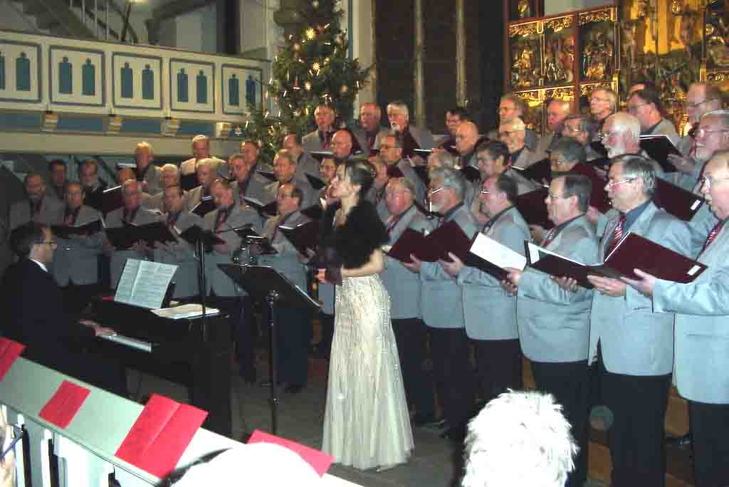 ausdrucksstarken und sehr vielseitigen Sängerin gelang es auch in Meerbeck sofort, die Herzen der Zuhörer zu gewinnen. Besonders gefielen das „Ave Maria“ und „Mariä Wiegenlied“ sowie das gemeinsam mit denm Männerchor vorgetragene „Dank sei Dir, Herr“. Der aus Bielefeld angereiste „Kinder- und Jugendchor Altenhagen“ rundete das Konzert mit einem vielseitigen Programm ab und setzte dabei auch einige Solostimmen ein. Gesungen wurden internationale Titel wie „Marys Boychild“ und „Happy X-Mas“ von John Lennon, aber auch bekannte deutsche Weihnachtslieder kamen nicht zu kurz. Der gastgebende Männerchor „Liederkranz“ präsentierte neben einigen Arrangements seines Chorleiters Manfred Neumann unter dem Motto „Weihnachten der Regionen“ u. a. Lieder aus Böhmen, Tirol, Italien und das bekannte, schwungvolle „Feliz Navidad“ aus Spanien.