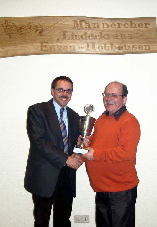 Jahreshauptversammlung 2007Lob für Arbeit des ChorleitersErnst Vehling singt seit 60 Jahren im „Liederkranz“Stadthagen. Der „Liederkranz“ Enzen-Hobbensen ist mit 56 aktiven Sängern und insgesamt 147 Mitgliedern gut bestückt. Vorstandsprecher Manfred Gröne sprach während Hauptversammlung des Vereins von einer „gesunden Mitgliederstruktur“. Dennoch ist die Mitgliederwerbung ein dringendes Anliegen des bekannten Chores. Das Durchschnittsalter der Sänger ist hoch.