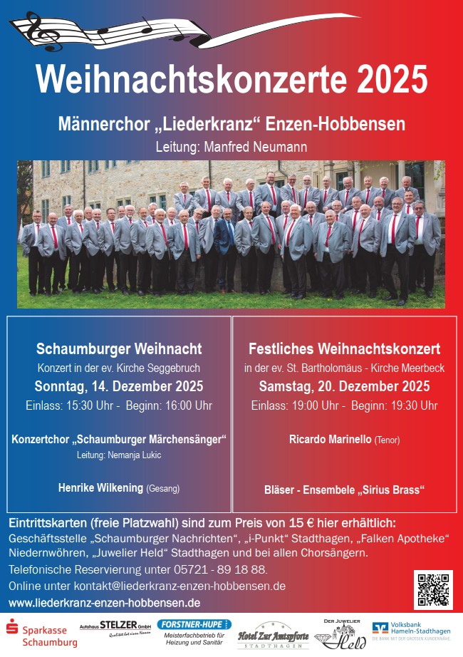 Weihnachtskonzerte 2025 Karten ab sofort erhältlich (siehe links) |